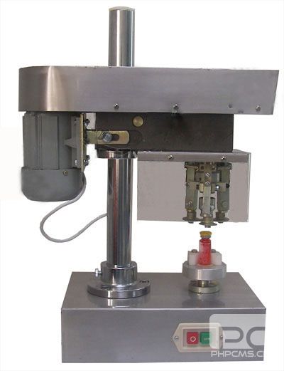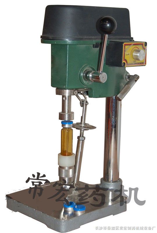 轧盖机可用于口服液瓶、二毫升瓶、大输液瓶、太太口服液瓶、青霉素瓶、喷雾管、胰岛素瓶、西林瓶、糖浆瓶等铝盖、铝塑盖、化妆品瓶、易拉盖、小铁盖、铜盖及冻干胶塞、平胶塞、凹字胶塞组合在一起轧盖。是全国广大药厂、科研所、实验室、医院药剂科等为大批量小批量分装各种药液所必需的易拉盖和铝盖的轧盖工具。