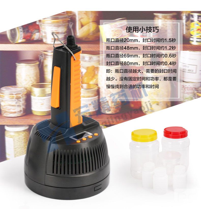 手持式电磁感应铝箔封口机小巧轻便,操作简单,粘合时间短,速度快,密封性极佳,性能稳定,广泛应用于制药、食品、化工、石油、农药、化妆品、宾馆旅游用品、轻工等行业对容器进行铝箔封口。