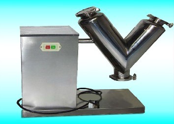 产品为V型高效不对称混合机,它适用于化工、食品、医药、饲料、陶瓷、冶金等行业的粉料或颗料状物料的混和。该机结构合理、简单、操作密闭,进出料方便,(人工或真空加料)筒体采用不锈钢材料制作,便于清洗,是企业的基础设备之一。本机一端装有电机与减速机,电机功率通过皮带传给减速机,减速机再通过联国器传给V型桶。使V型桶连续运转,带动桶内物料在桶内上、下、左、右进行混合。本机适用于制药、化工、食品的干粉状、颗粒装物料的混合。混料筒结构独特,混合均匀,效率高,不积料。整机结构简单,操作容易。外表面和物料接触部分均采用优质不锈钢制造,造型美观,维护、清洗方便。