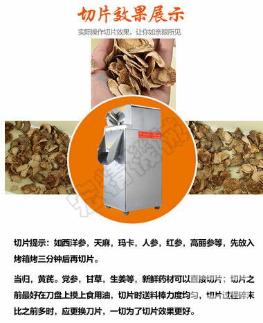 切片机的功能齐全,可对各种名贵药材,参类食品等物料进行切片处理。