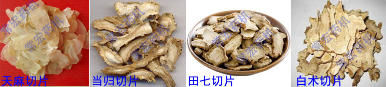 用于所有叶、皮、藤、根、草、花类和大部分果实、种子类药材料或农产品、水产品切制加工。可切制0.7-60mm范围内片、段、条等一般饮片,配组合刀可切制0.7-20mm范围内多角形颗粒饮片。比如麻黄、甘草、黄芪、枳壳、柴胡、丹皮、杜仲、生(熟)地、灵芝、人参、麦东、红枣、勺药、黄柏、厚朴、独活、青风藤、柿蒂、辣椒、白术、鱼腥草等动植物药材,鱿鱼、墨鱼、鳗鱼、海带等水产品。