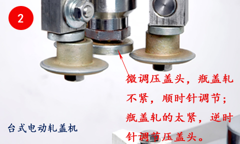 2、盖子轧的太紧,有旋切瓶盖现象。可旋开上轧盖头锁紧螺母按顺时针方向旋进上轧盖头,然后锁紧上固定螺母。
