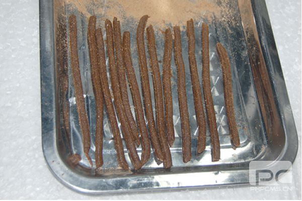 2 、成形:物料混合均匀后,用手将混合好的物料搓成圆柱形