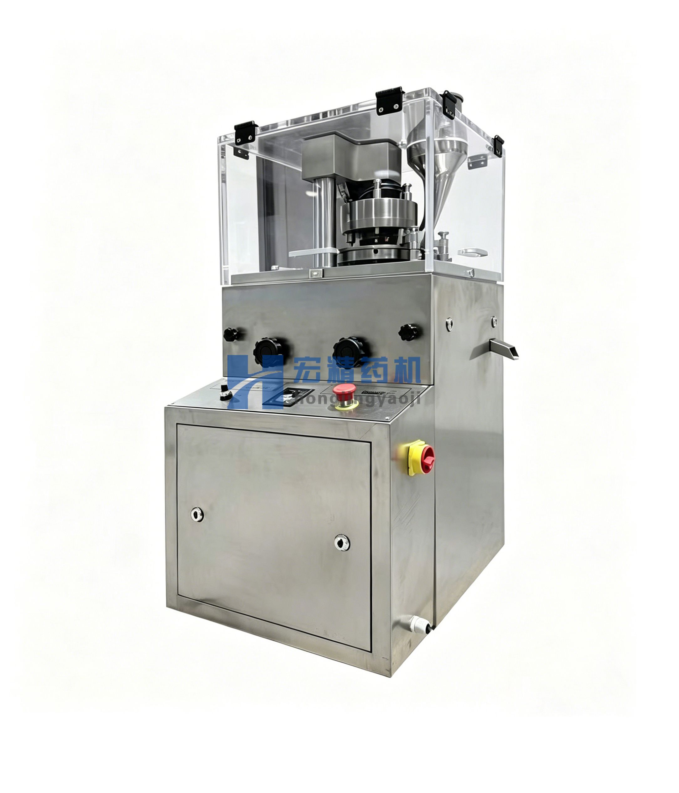 适合场景:小型药厂、保健品作坊、食品厂压钙片、医院制剂室。覆盖大部分常规片剂需求,是该系列的主力型号。